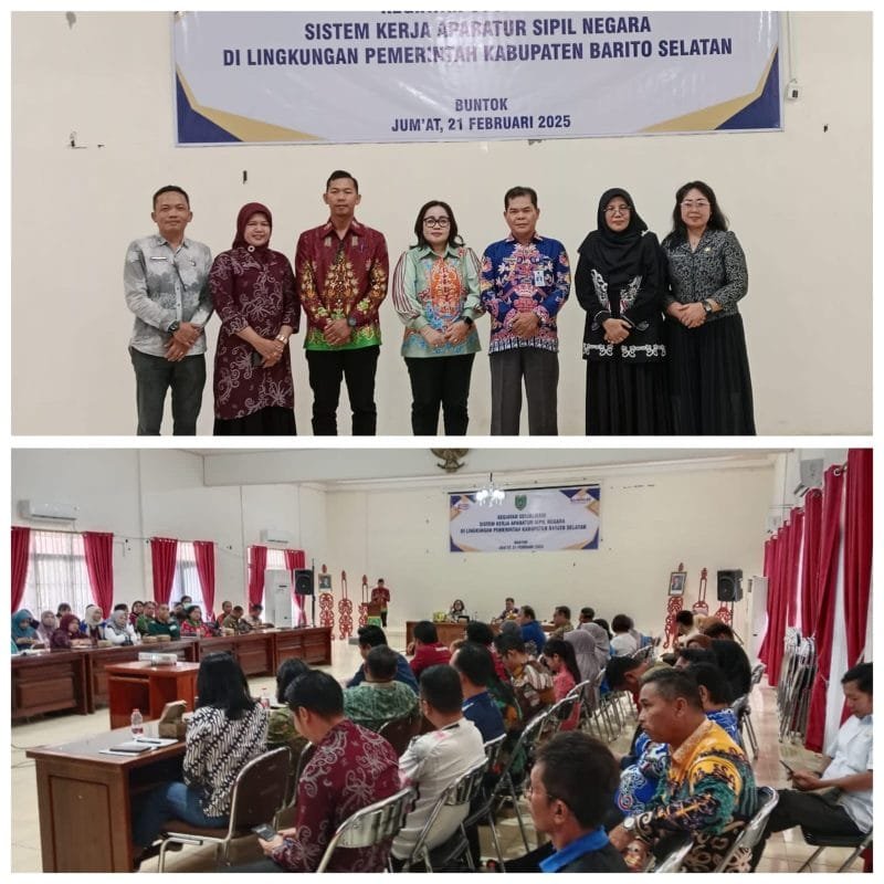 itahpost.com, BARITO SELATAN – Dalam upaya mendukung sistem birokrasi yang lebih efisen, Pemerintah Kabupaten (Pemkab) Barito Selatan (Barsel), gelar sosialisasi sistem kerja Aparatur Sipil Negara (ASN), bertempat di Aula Kantor Badan Perencanaan Pembangunan Riset dan Inovasi Daerah (Bapperida), Jumat (21/02/2025).